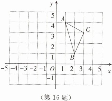 16. 如图,在平面直角坐标系中,$\triangle A_1B_1C_1$与$\triangle ABC$关于$y$轴对称。