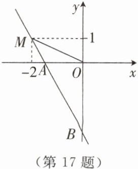 17. 如图,已知一次函数$y = kx - 3$的图象经过点$M(-2,1)$,且与$x$轴、$y$轴分别交于点$A$,$B$。