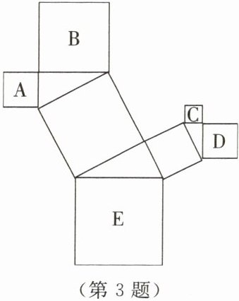 3. 下图是一棵美丽的勾股树,其中所有的四边形都是正方形,所有的三角形都是直角三角形。若正方形 A,B,C,D 的边长分别是 4,8,2,4,则正方形 E 的边长是(