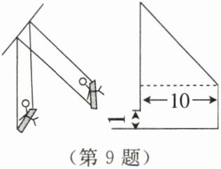 9. 我国明代数学家程大位所著《算法统宗》中记载了这样一个问题,大意是:有一架秋千,当它静止时,踏板离地 1 尺(我国古代长度单位);将它往前推送 10 尺(水平距离)时,秋千的踏板就和人一样高,这个人的身高为 5 尺,秋千的绳索始终拉得很直,问绳索长多少尺。如图,设秋千的绳索长为 x 尺,根据题意可列方程为___。