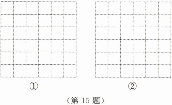 15. 如图,正方形网格中每个小正方形的边长都是 1,每个小正方形的顶点叫作格点,以格点为顶点分别按下列要求作图。