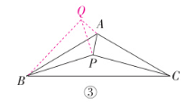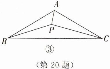 (3)如图③,在等腰三角形 ABC 中,$ AB = AC $,$ \angle BAC = 120^{\circ} $,P 为三角形内一点,连接 AP,BP,CP。当 $ \angle APB - \angle ABC = 90^{\circ} $ 时,AP,BP,CP 满足 $ (kAP)^{2} + BP^{2} = CP^{2} $,请直接写出 k 的值。
