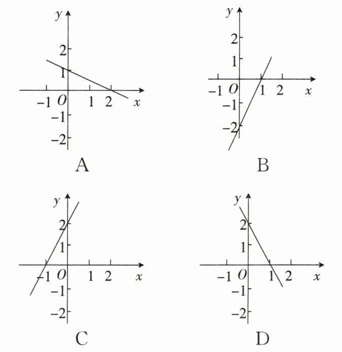 选项D:该图象从左到右下降,y随x的增大而减小,说明斜率$k\lt 0,$不符合y = 2x + 2中$k = 2\gt 0$的性质,所以选项D错误。