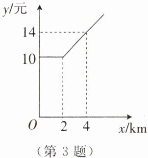 3. 某地出租车的计费方式如图所示,$x$(单位:$km$)表示行驶里程,$y$(单位:元)表示车费。