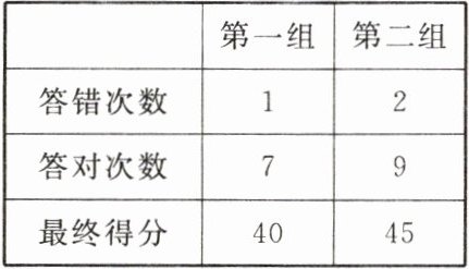 (2)若第三组答错$3$次,最终得分是$41$分,则第三组答对了多少次?