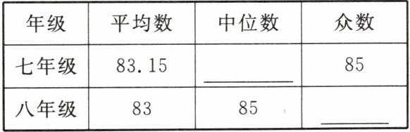 七年级:68,70,72,73,78,80,81,82,83,83,84,85,85,85,86,89,92,93,96,98;