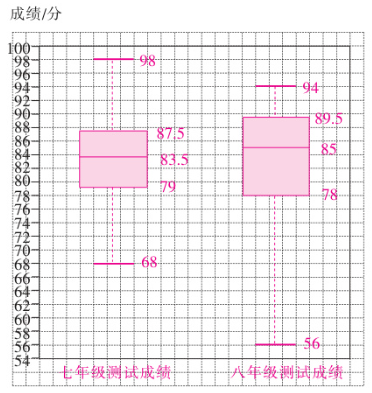 (3)结合两个年级测试成绩的箱线图,选取一个方面比较两个年级测试成绩的情况。