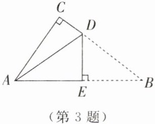 3. 如图,一张直角三角形纸片 $ ABC $ 的两直角边 $ AC = 6 cm $,$ BC = 8 cm $。若将纸片沿 $ DE $ 折叠,使点 $ B $ 与点 $ A $ 重合,则 $ CD $ 的长为(