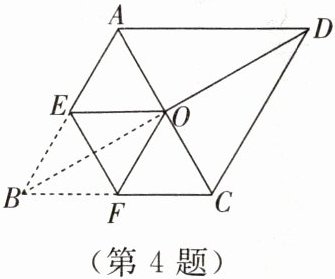 4. 如图所示,菱形$ABCD$的对角线相交于点$O$,$AC = 4$,$BD = 4\sqrt{3}$.将菱形按右图所示的方式折叠,使点$B$与点$O$重合,折痕为$EF$,则五边形$AEFCD$的周长 (第 4 题)