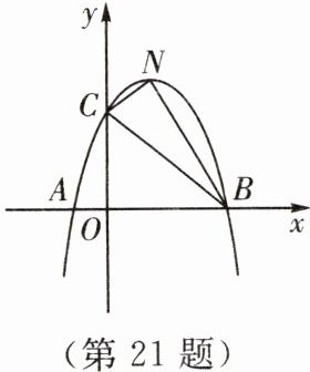 21. 如图所示,抛物线$y=-\frac{3}{5}[(x-2)^{2}+n]$与$x$轴相交于点$A(m-2,0)$和点$B(2m+3,0)$(点$A$在点$B$的左侧),与$y$轴交于点$C$,连接$BC$.