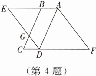 4. 如图所示,在$□ ABCD$中,$G$为$BC$边上一点,$DG = DC$.延长$DG$交$AB$的延长线于点$E$,过点$A$作$AF // ED$,交$CD$的延长线于点$F$.求证:四边形$AEDF$是菱形.