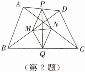 2. 如图所示,在四边形$ABCD$中,$P,Q,M,N$分别是$AD,BC,BD,AC$的中点.当四边形$ABCD$满足