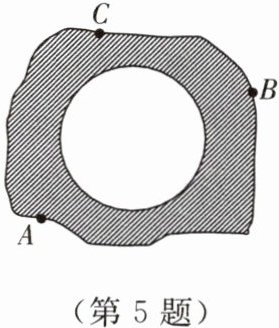 5. 小明在操场上做游戏,他发现地上有一个不规则的封闭图形$ABC$,为了知道它的面积,他在封闭图形内画了一个半径为1m的圆(如图所示),在不远处向图形内掷石子,且记录如下: