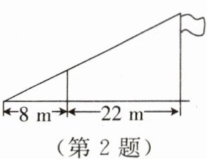 2. 如图(示意图)所示,小东用长为$3.2\ m$的竹竿做测量工具测量学校旗杆的高度.移动竹竿,使竹竿和旗杆顶端的影子恰好落在地面上的同一点,此时,竹竿底端与这一点相距$8\ m$,与旗杆底端相距$22\ m$,则旗杆的高为
