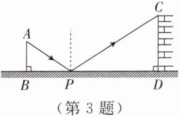 3. 小明设计用手电来测量古城墙高度的示意图如图所示.点$P$处放一水平的平面镜,光线从点$A$出发经平面镜反射后刚好射到古城墙$CD$的顶端$C$处.已知$AB\perp BD$,$CD\perp BD$,若测得$AB=1.2\ m$,$BP=1.8\ m$,$PD=12\ m$,则该古城墙的高度是