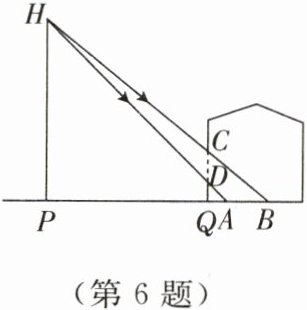 6. 如图所示,小超想要测量窗外的路灯$PH$的高度.某天晚上,他发现灯光透过窗户照射在房间的地板上,经过窗户的最高点$C$的灯光落在地板$B$处,经过窗户的最低点$D$的灯光落在地板$A$处,小超测得窗户距地面的高$QD=1\ m$,窗高$CD=1.5\ m$,并测得$AQ=1\ m$,$AB=2\ m$.请根据以上测量数据,求窗外的路灯的高度.