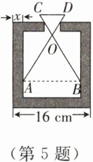 5. 如图所示,零件的外径为$16\ cm$,需求它的壁厚$x$,要先求出内径$AB$.现用一个交叉钳($AD$与$BC$相等)去量,测得$OA:OD=OB:OC=3:1$,$CD=5\ cm$,求出零件的壁厚$x$.