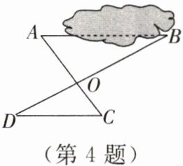 4. 为测量池塘边两点$A$,$B$之间的距离,小明设计了如下方案:在地面取一点$O$,使$AC$,$BD$交于点$O$,且$CD// AB$.若测得$OB:OD=3:2$,$CD=40\ m$,则$A$,$B$两点之间的距离为