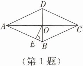 1. 如图所示,在菱形 $ABCD$ 中,对角线 $AC$ 与 $BD$ 相交于点 $O$, $OE \perp AB$,垂足为 $E$. 若 $\angle ADC = 130°$,则 $\angle AOE$ 的大小为