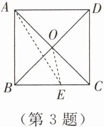 3. 如图所示,正方形的对角线交于点 $O$,$E$ 是直线 $BC$ 上一动点. 若 $AB = 4$,则 $AE + OE$ 的最小值是