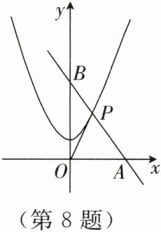 8. 如图所示,抛物线$y = ax^{2} + 2$与经过点$A(4,0)$,$B(0,6)$的直线在第一象限内相交于点$P$,且$\bigtriangleup AOP$的面积为$6$.