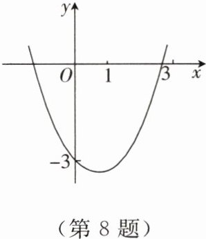 8.如图所示,已知抛物线$y = x^{2} + bx + c$经过点$(0, - 3)$,该抛物线与$x$轴的一个交点在$(1,0)$和$(3,0)$之间,求$b$的取值范围.