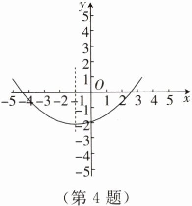 4.小颖用几何画板软件探索方程$ax^{2} + bx + c = 0$的实数根,作出了如图所示的图象,观察后得到一个近似根为$x_{1} = - 4.5$,则方程的另一个近似根为$x_{2} =$$$(结果精确到$0.1$).