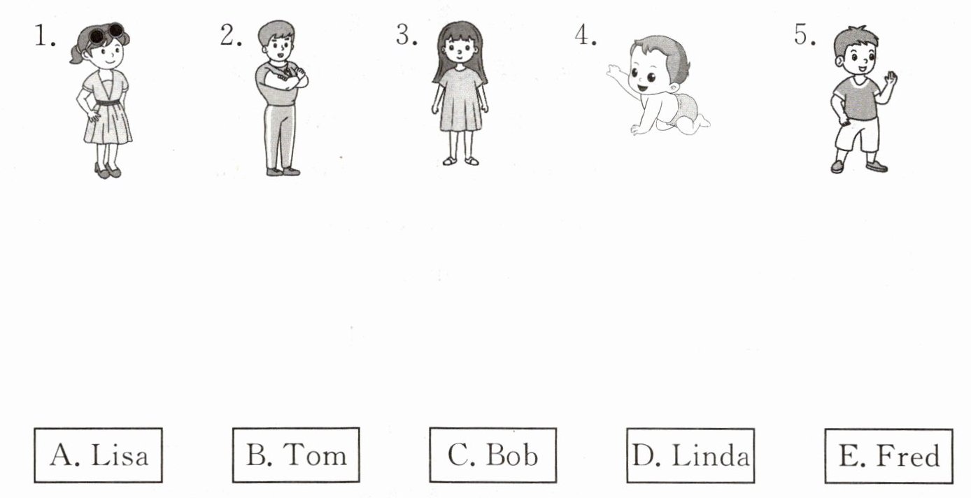 二、Bob 和他的家人也来参加活动。请听 Bob 的介绍,将图片与人名连线。