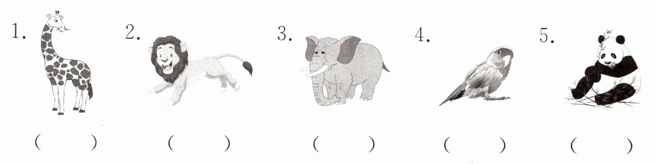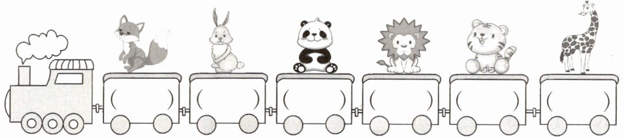 三、动物园很大,需要乘坐观光小火车参观。听句子,用数字1—6给每节车厢上的动物造型排序。