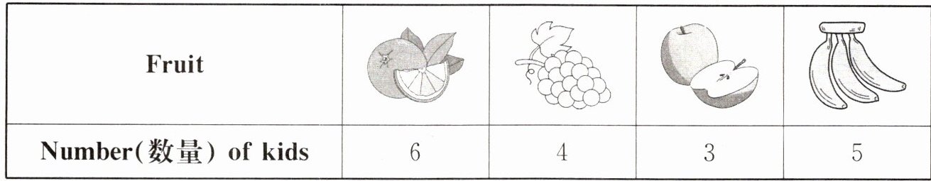二、宣讲员对孩子们最喜欢的一种水果情况进行了统计。请根据统计表,将正确选项的序号填在横线上。
