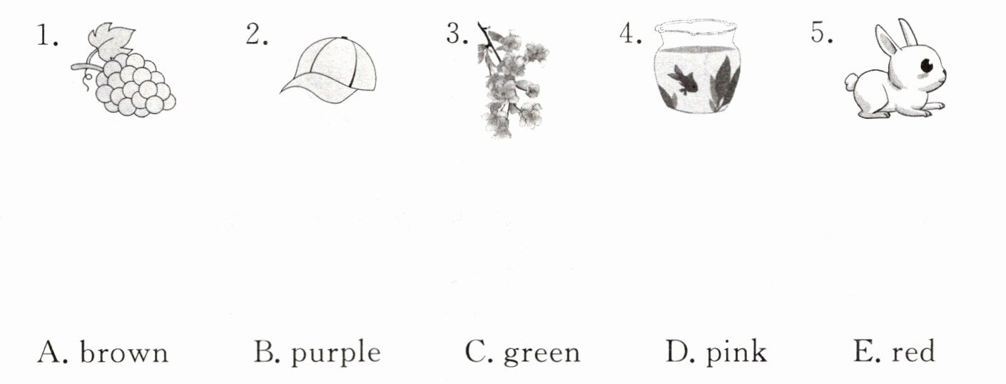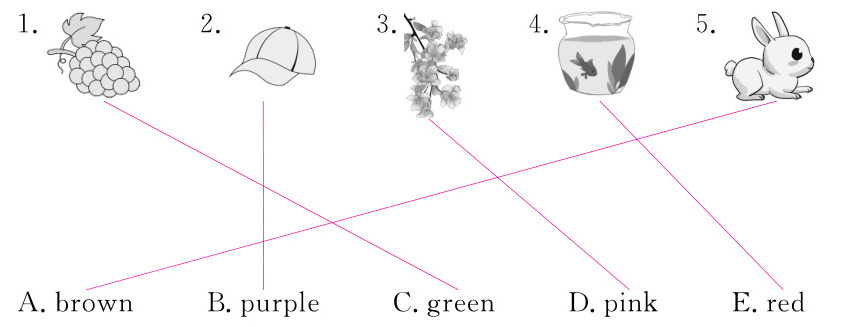 一、博物馆之旅激发了兰兰对颜色的兴趣。回家后,她开始留意身边事物的颜色。听句子,连线。