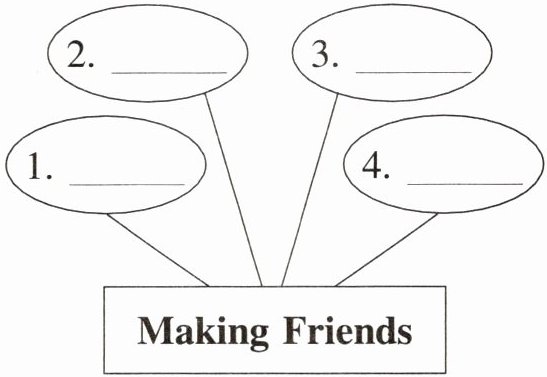 一、在机器人社团里,机器人小天正在和同学们讨论关于交友的话题。听句子,选择正确的选项,完成思维导图。
