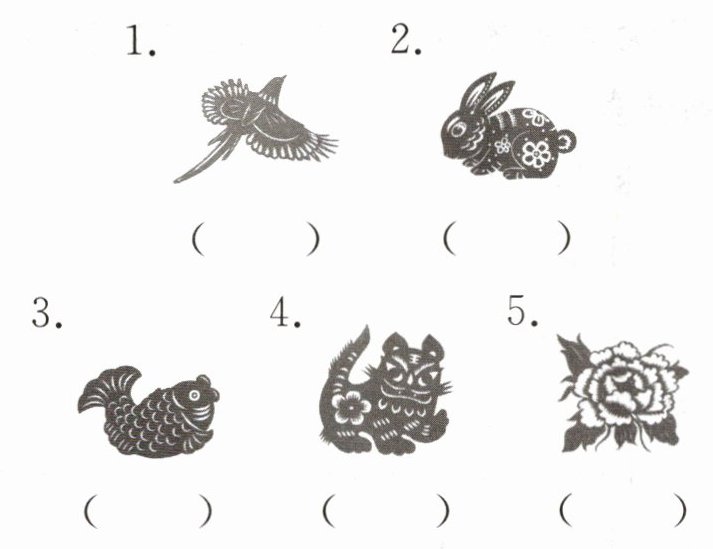 十、Sam 带来了他的剪纸作品。请选择正确的句子,向大家介绍 Sam 的剪纸作品。