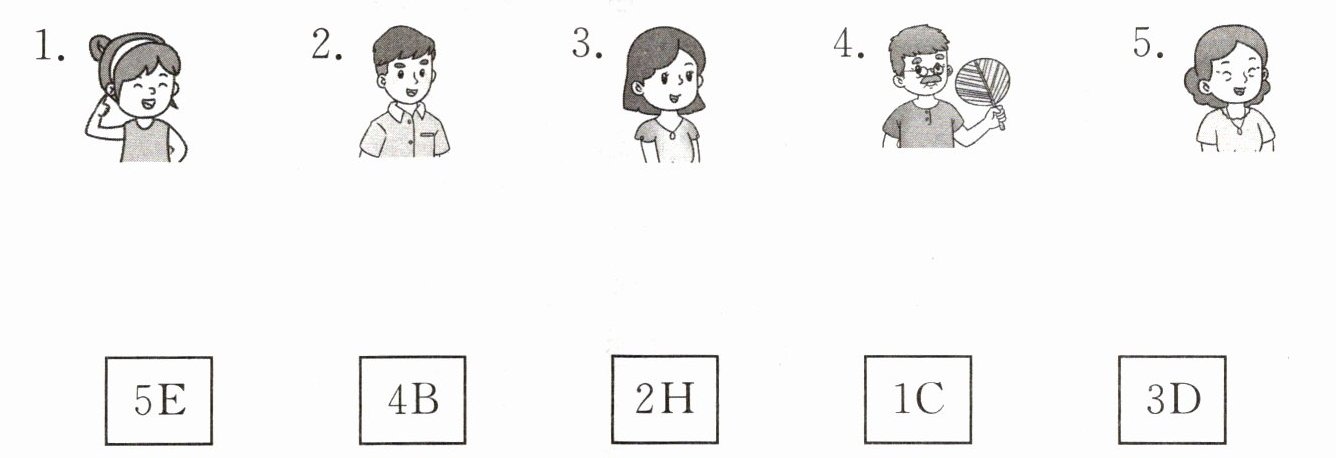 一、Lucy一家受邀参加学校举办的“美好时光·向阳生长”成长礼活动,他们手里拿着入场券。听对话,找到他们的座位号并连线。
