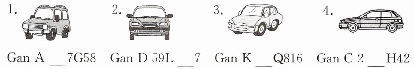 一、“成长·庆生”环节,老师带领同学们玩起了有趣的数字游戏。听录音,用阿拉伯数字补全车牌信息。