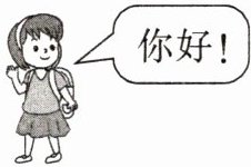 2. 第二幅图中人物是一个小女孩,旁边有“你好!”的文字,从图中可以看出她个子不高,并且看起来很友好,与句子“She's short and friendly.”描述相符。
