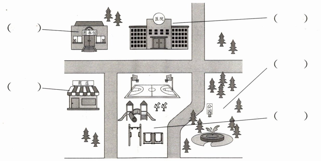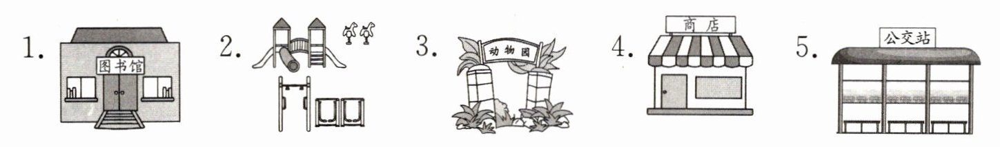 一、琳琳搬到了一个新社区,她的邻居正在给她介绍社区的环境。听对话,用数字1—5给图中的场所排序。