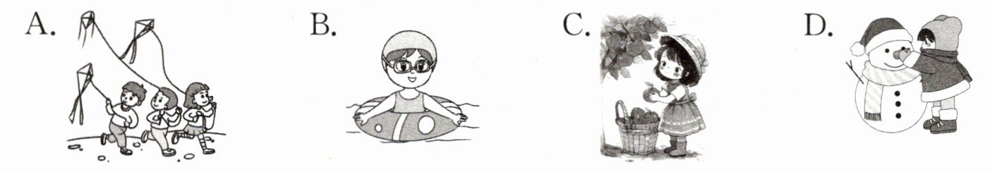 二、同学们画出了自己喜欢的季节。请给下列句子选择对应的图片。