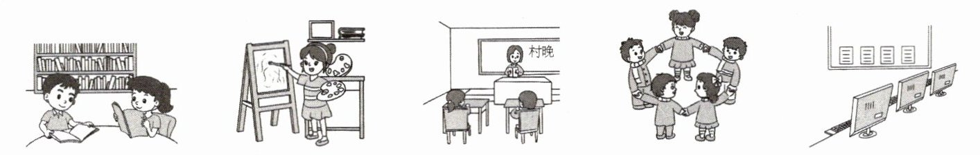 一、Sarah 和 Tina 正在讨论她们的日常活动。听句子,用数字 1—5 给下列图片排序。