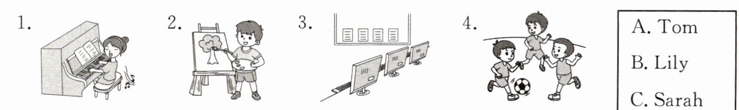 任务一:1. C 2. D 3. B 4. A 任务二:1. Chinese 2. Wednesdays