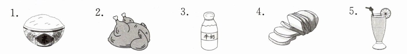 一、中午,Amy 和同学们在食堂用餐。听对话,判断下列图片与你所听到的内容是否相符,相符的画“√”,不相符的画“×”。