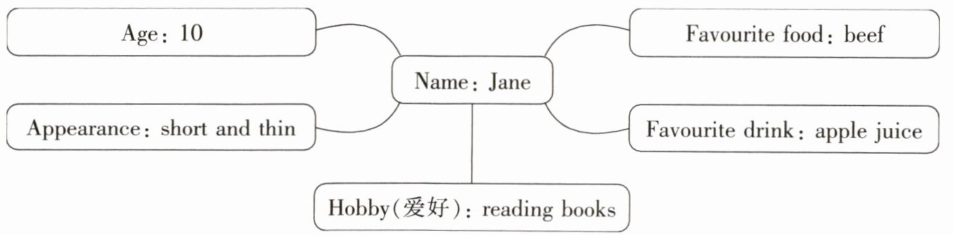 三、为了让 Joe 更了解班上的同学,老师让同学们轮流做自我介绍。假如你是 Jane,你会如何介绍自己?请根据思维导图,写一篇短文介绍自己。