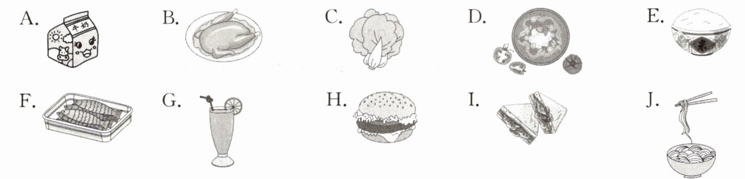 一、John 正在向新来的同学 Joe 介绍食堂的菜品。听短文,选择正确的选项补全菜单。
