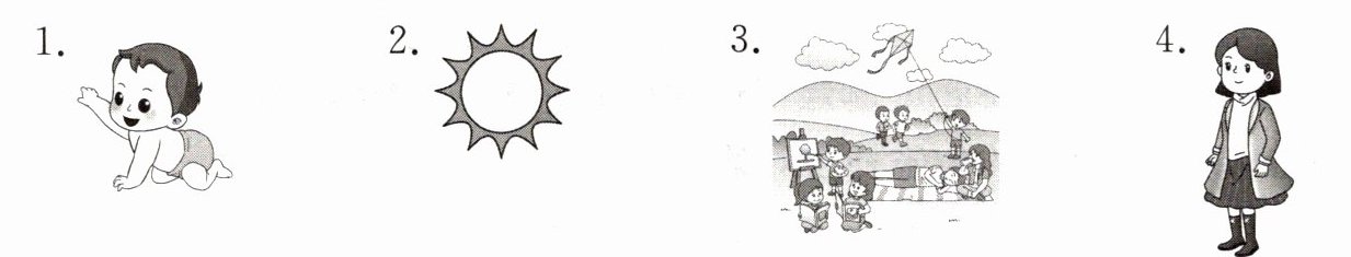 1. baby; happy 2. sunny 3. cloudy; fly 4. young