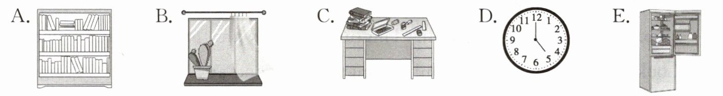 二、Alice一边带大家参观,一边给大家介绍家里的布置和陈设。请根据描述,选择对应的图片。