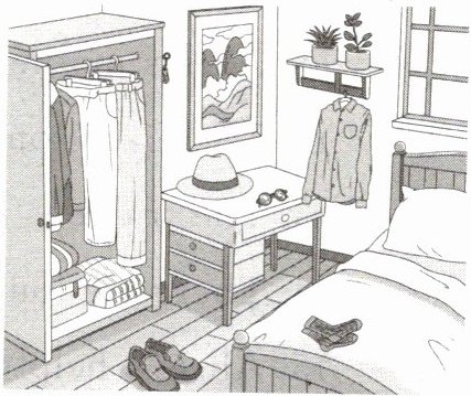 三、Alice 把爷爷的房间整理得井井有条的。请看 Alice 爷爷的房间,判断下列句子的正误,正确的写“T”,错误的写“F”。
