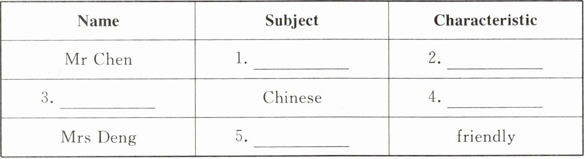 1. art 2. funny 3. Mrs Guo 4. strict 5. English