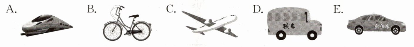 【解析】:本题可根据每个句子中描述的出行方式,与所给图片进行匹配。