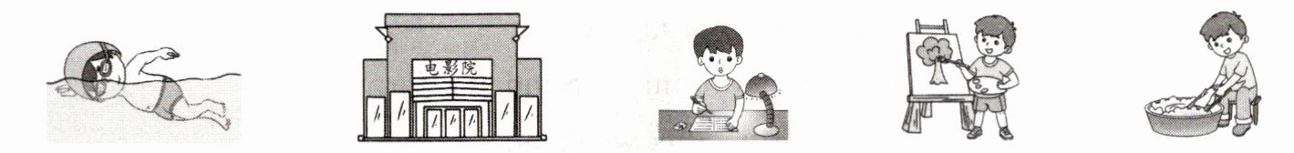 1. 第一幅图是两张电影票,结合问句“this Sunday”,可知是去看电影,“看电影”常用表达为“see a film”,be going to 后接动词原形,所以填“see a film”。
