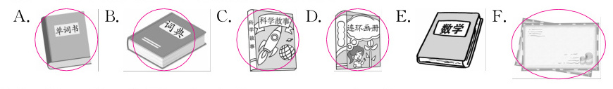 一、乐乐和 Kate 在逛书店。听对话,用数字1-5给下列图片排序。